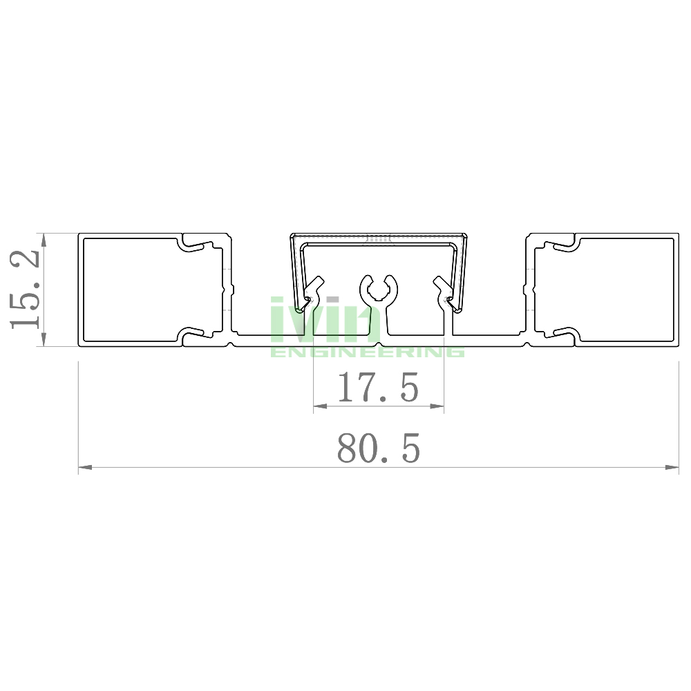 Aluminum profile. 15.2*52.48mm 1M standard lenght or 0.6M 1.2M or other length. use 2 * 10mm width LED strips. Silver anodize finish. 420g / M. |